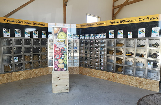 La ferme propose également de la vente directe via des distributeurs automatiques, notamment sous forme de paniers, dont certains sont conçus pour réaliser des recettes à la maison.